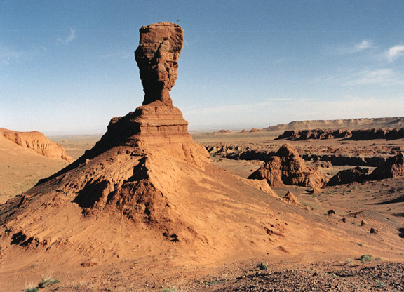 25%に過ぎません。この地では、ラクダの放牧が最も多く見られます。また、この地には恐竜の化石も数多く発掘され、太古へのロマンをかきたててくれます。南ゴビの飛行場から約50km北にあるモルツォグ砂丘は、日本人が思い描くゴビ砂漠のイメージそのものの景色が広がります。